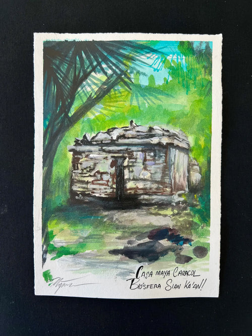 Casa Maya Caracol – Acuarela original de arquitectura maya